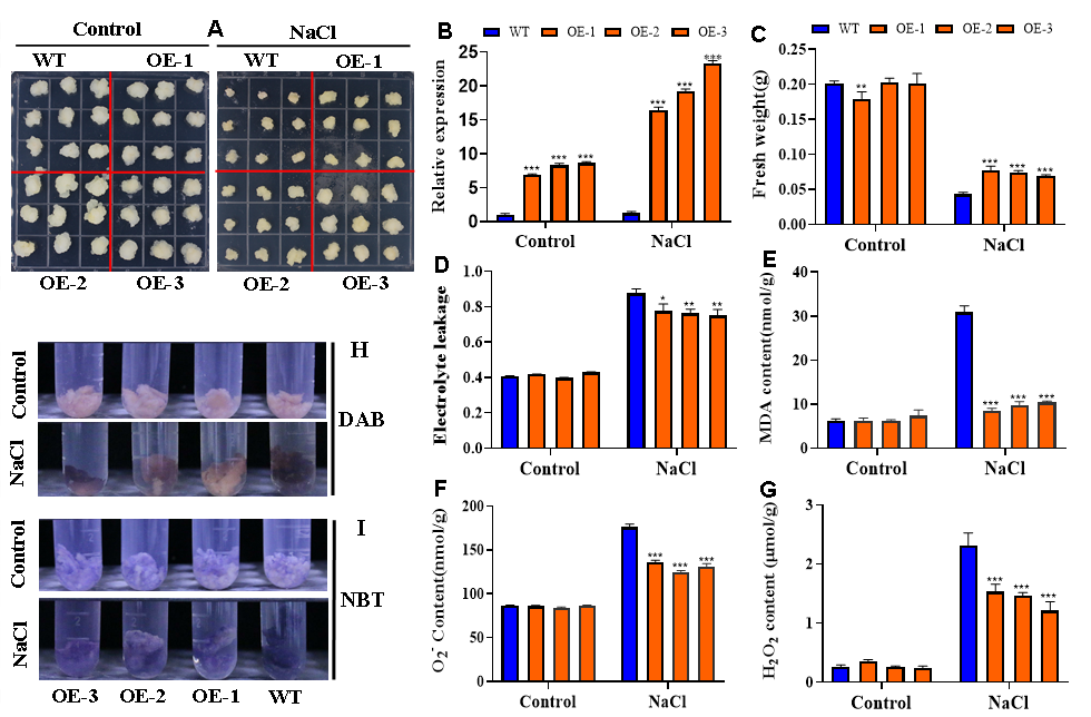 图2 过表达MdATL16增强苹果愈伤的耐盐性