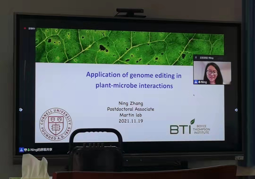张宁博士系统的介绍了植病互作重要的模式系统:番茄与丁香假单胞菌互作系统;利用CRISPR/Cas9技术编辑番茄150多个免疫相关基因,获得了200多个番茄突变系,构建了植物基因组编辑数据库,通过该数据库可与全世界科研人员分享番茄基因编辑突变体;通过筛选免疫基因编辑番茄突变体,发现SlWak1基因敲除突变体对病原菌的易感性增加,并详细研究了该基因参与番茄与细菌互作的PTI途径的机制;该研究为深入了解植物与病原菌互作的机制提供了重要的信息。