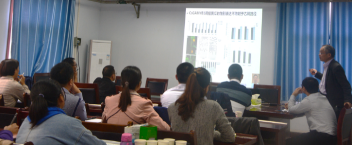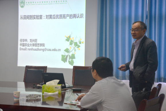 本次报告会上任华中教授重点阐述黄瓜在全球各地蔬菜中的重要地位及其相关性状的机理研究。阐述了世界各地黄瓜主栽品种在经历从野生种到栽培种的选择、驯化后果实品质、性型分化以及环境适应上发生明显变化,针对上述改变的生物学问题初步探究其形成的分子机制的研究。报告内容详实,深入浅出,给在场师生很多启发。