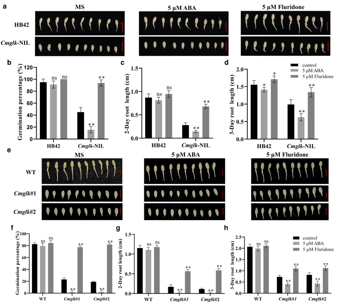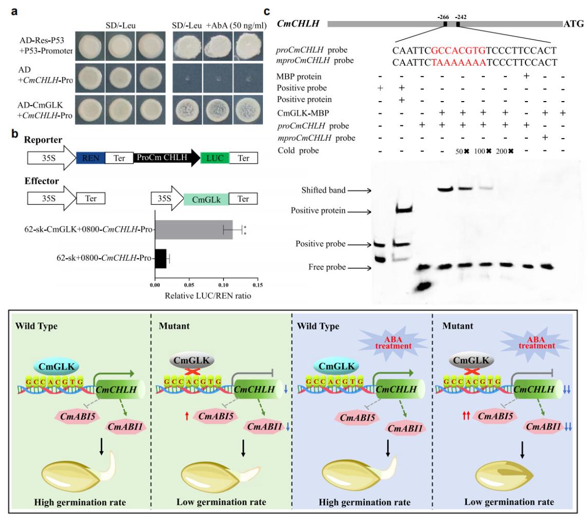 这项研究的关键创新在于,成功将一个传统上被认为调控“叶绿体发育”的GLK转录因子,重新定位到“种子萌发速率”这一重要农业性状的调控网络中,并阐明了一个完整的分子机制闭环:CmGLK直接转录激活CmCHLH,进而通过调控ABA信号通路的抑制强度影响萌发进程。该发现为甜瓜乃至葫芦科作物在育苗整齐度与出苗速度的遗传改良提供了明确的双靶点策略:CmGLK/CmCHLH。